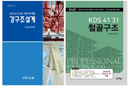 제 기준에서 공부하다가 느낀 점은 강구조가 철근콘크리트보다는 쉽다는 것이었습니다. 제가 보는 강구조 책은 딱 두 권입니다. 한국강구조학회에서 발행한 KDS 41 31 00 : 2019에 따른 강구조 설계는 강구조의 기본서이므로 꼭 챙겨봐야 합니다. 서보현 저자의 KDS 41 31 철골구조도 기술사를 준비하시는 분들이 많이 참고하는 책으로 내용이 좋습니다.