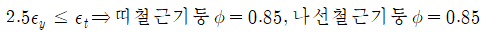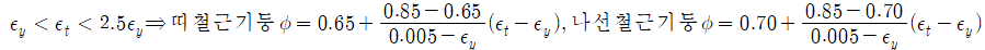 강도감소계수는 다음과 같이 산정할 수 있으며 해당 내용을 반영하여 설계상관도를 작도합니다.