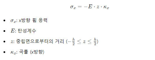 위의 식은 재료역학에서 확인할 수 있습니다. 휨응력과 곡률의 관계는 기본적인 내용이므로 설명을 별도로 하지 않겠습니다!