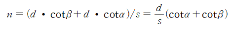 위의 그림에서 스터럽은 s의 간격으로 배근되어 있고 균열면 내에 존재하는 스터럽의 개수는 다음과 같습니다.