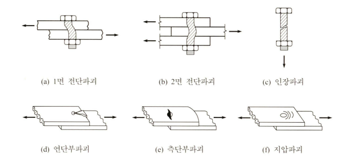 볼트접합의 파괴형식 / 출처: 강구조설계(한국강구조학회)