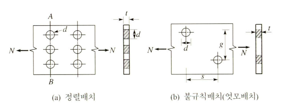볼트접합에는 정렬배치와 불규칙배치(엇모배치)두가지 배치가 있습니다. 엇모배치가 구조적으로 유리하지만 실제 시공에서는 정렬배치를 많이 사용해서 시공을 진행합니다. 설계가 간편하기 때문도 있습니다.