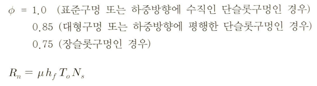 1) 표준구멍, 대형구멍, 단슬롯 구멍의 모든 방향에 대한 지압력 / 장슬롯 구멍이 지압력 방향과 평행일 경우