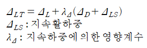 장기처짐은 지속하중에 의한 영향계수를 곱하여 추가적인 처짐을 고려합니다. 식으로는 다음과 같습니다.