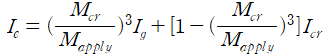 유효단면2차모멘트는 비균열단면과 균열단면을 정확하게 구분하여 어렵기 때문에 균열이 발생하는 부재에 유효단면2차모멘트를 산정하여 계산합니다. 유효단면2차모멘트는 다음과 같이 산정합니다.