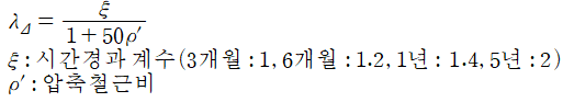 장기처짐은 지속하중에 의한 영향계수를 곱하여 추가적인 처짐을 고려합니다. 식으로는 다음과 같습니다.