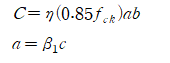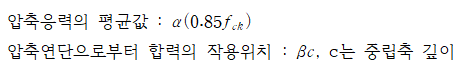 여기서, 압축응력의 평균값과 압축연단으로부터 합력의 작용위치에 대한 비율을 나타내는 계수로 다음과 같이 알파와 베타가 있습니다.