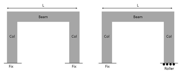 예를 들어 보가 기둥 사이에 구속되어 있는데 다음과 같은 두 상황에 대해서 고려해봅시다.