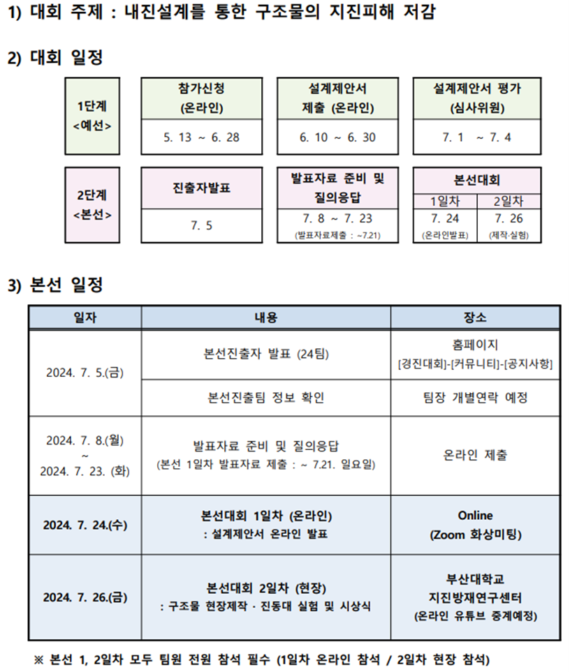 그러면 이제 2024년 구조물 내진설계 경진대회를 소개해드리도록 하겠습니다.